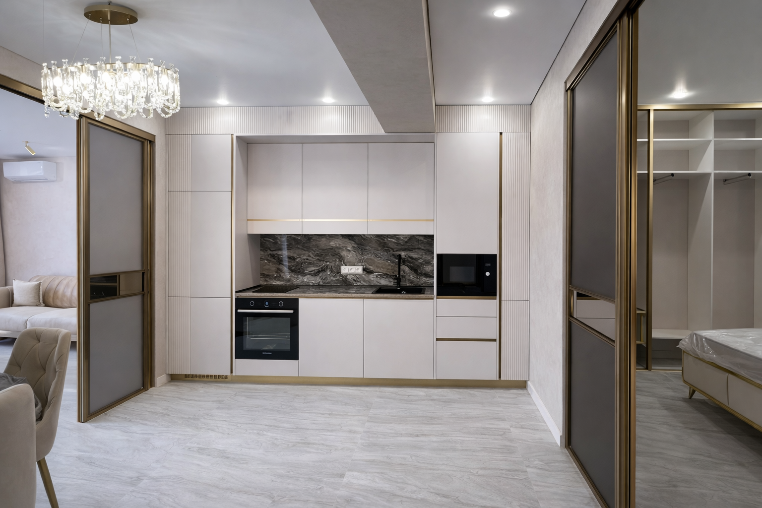 Никогда не экономим на качестве МДФ, ЛДСП, кромки. Выбирая даже самые бюджетные кухни и шкафы, вы получите качественную мебель!